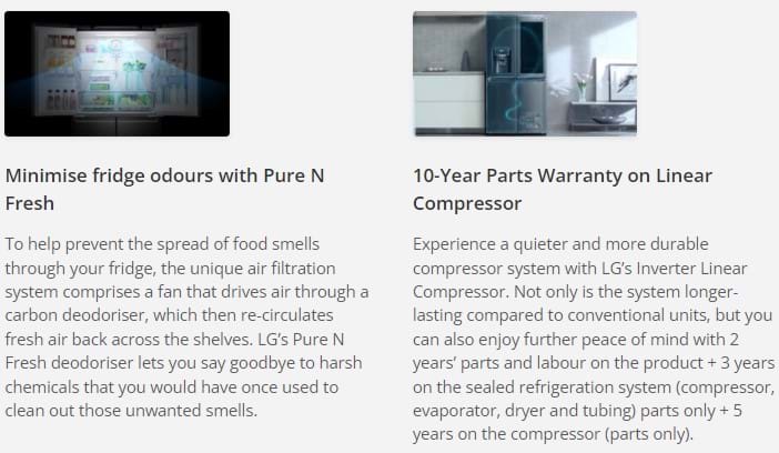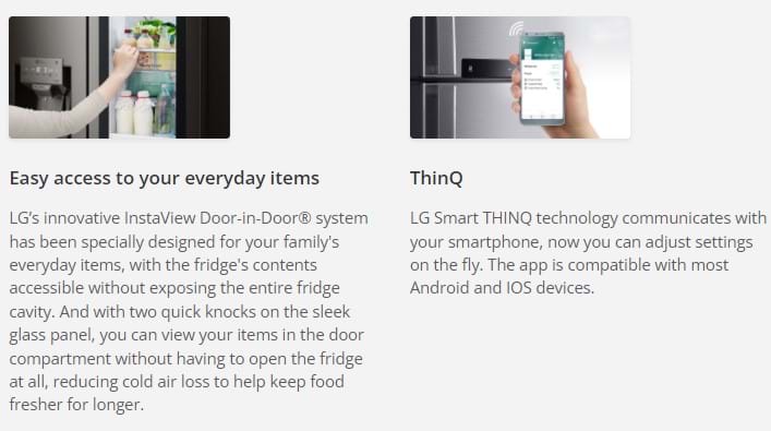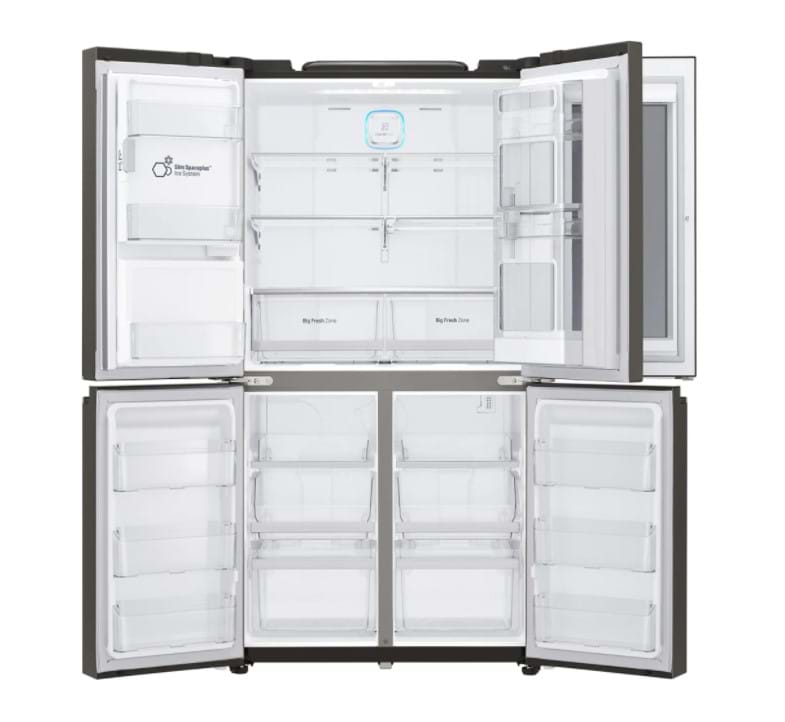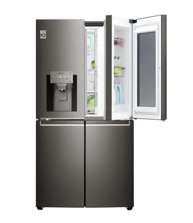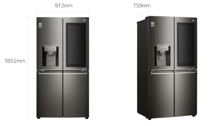 The black stainless steel 708 litre french door Instaview features convenience larger households will appreciate. Easily view your favourite snacks and beverages with the two tap Instaview glass panel. The door-in-door design lets you access your favourite items conveniently while reducing cold-air lose. Get continuous filtered water with the slim water & ice system, designed to fit taller containers while taking up less space.