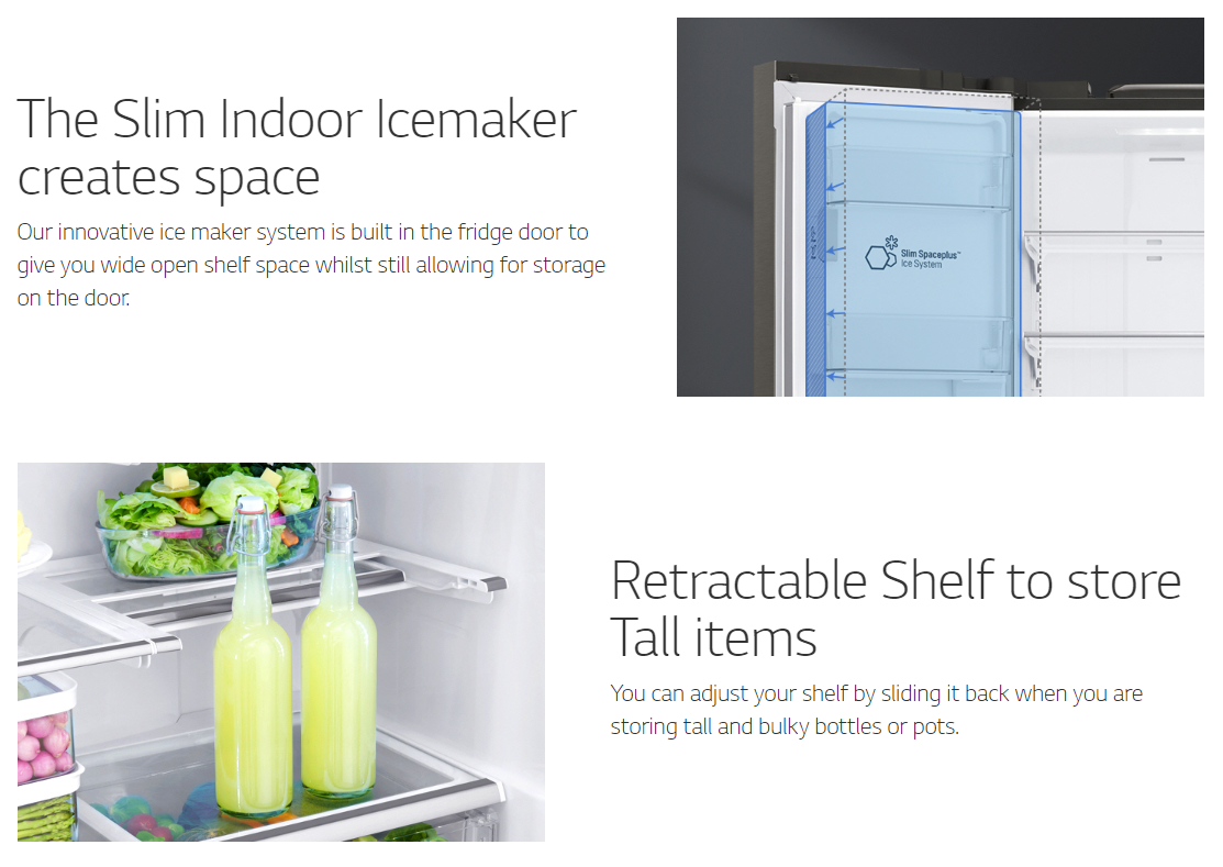 The LG GF-L613PL French door fridge really is an entertainer's dream. This refrigerator hosts a number of features that’ll make entertaining a large number of guests, or your own family, easier and hopefully less stressful. Enjoy easy access to filtered water and a variation of ice, thanks to the tall bottle ice and water dispenser, and with features such as express freezing and LG’s Smart Diagnosis, it’s no wonder why it’s such a loved refrigerator. So if your household is in need of a lot of food storage but you’re also wanting an appliance that’ll make storing, organising and accessing your groceries easy, then the LG GF-L613PL French Door Fridge is definitely the refrigerator for you.