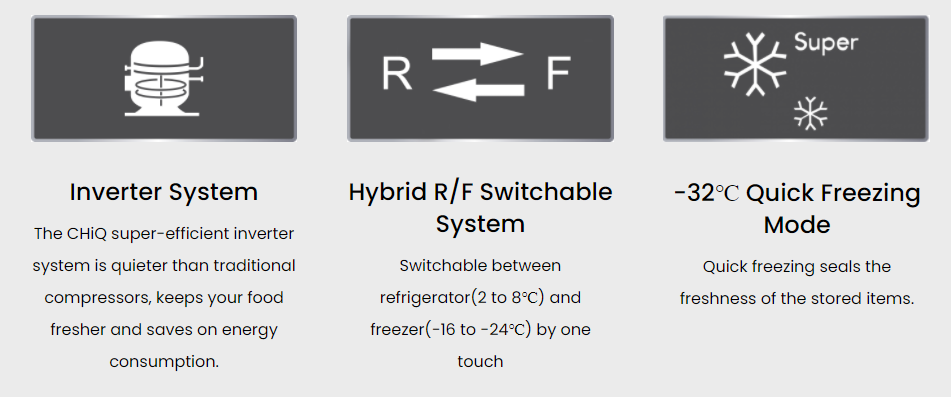 Equipped with a frost-free system, CHiQ single door freezer ensures the ambient temperatures are maintained inside the cavity, eliminating the need for scrapping the ice from the internal walls.