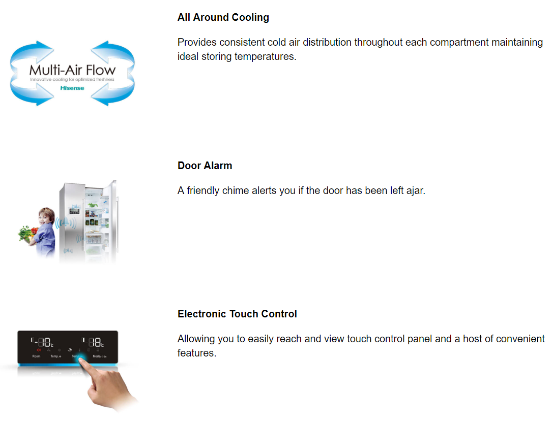 The stainless steel HR6AFF355SD single door fridge carries a 355L fridge-only capacity, sufficient for a small household of 1-2 people. Encouraging ease-of-use, Hisense integrates adjustable spill-proof glass shelves, easy slide drawers and LED touch control panel. Its slim design leaves greater space in your home, encouraging you to invest in its matching freezer, the HR6VFF280SD.