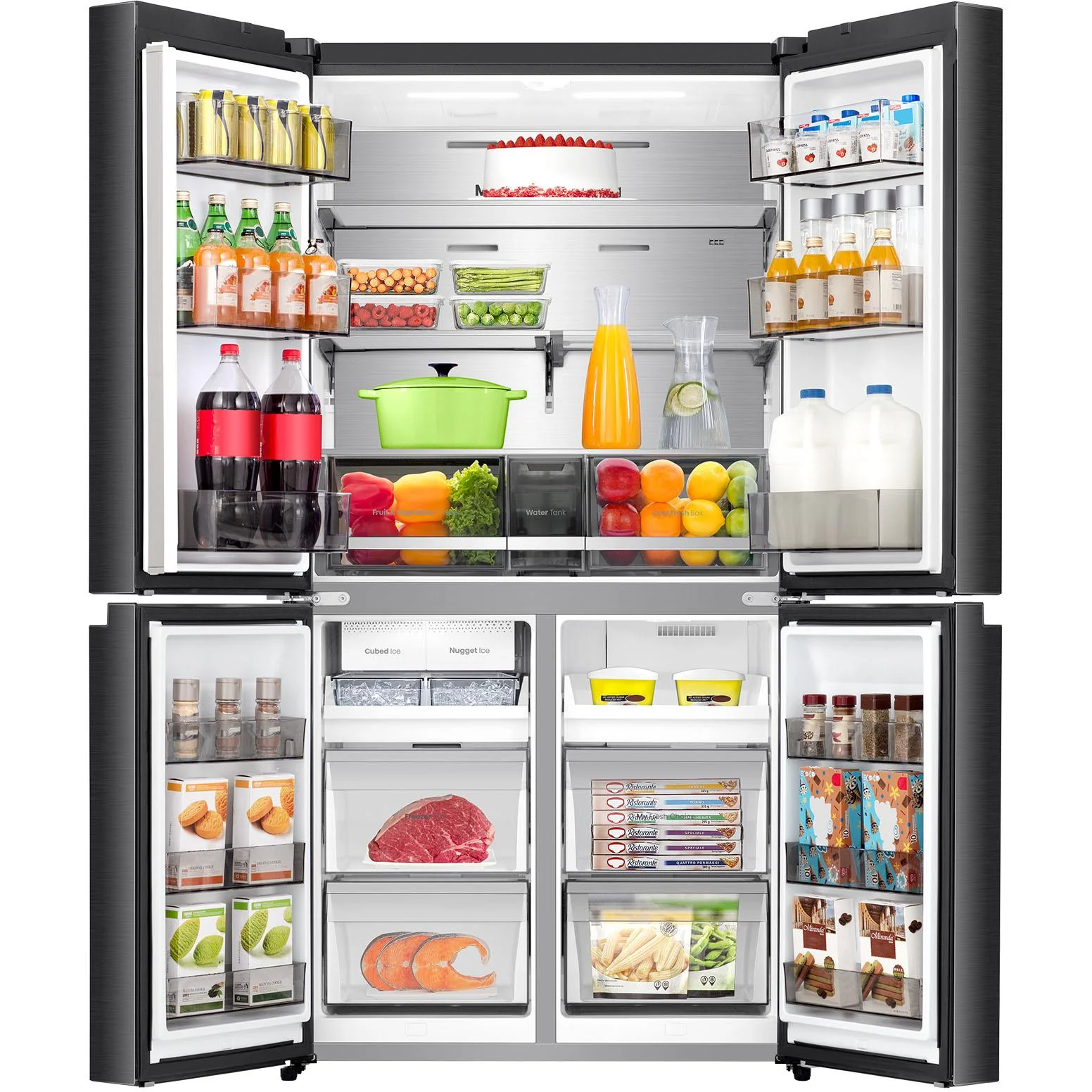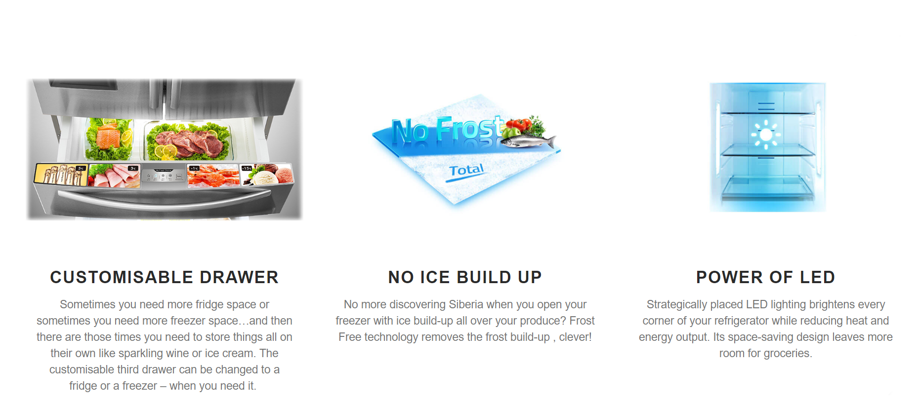 Our Hisense designers have delivered the smartest French Door fridge yet when it comes to capacity, big families, big entertainers and foodies. With the integrated ice and water dispenser your home now has a permanent supply of chilled water and able to make up to 1.8kg of crushed or cubed ice (authorised plumber required). The 701 litre is engineered for efficiency with its Inverter Compressor Motor. The interior space is massive and adaptable with innovative storage solutions such as a slide-away shelf, a dedicated frozen pizza box space and a customisable third drawer that can turn to a fridge or freezer. Other features include multi-function touch control panel, super freeze/cool settings and LED interior lighting.