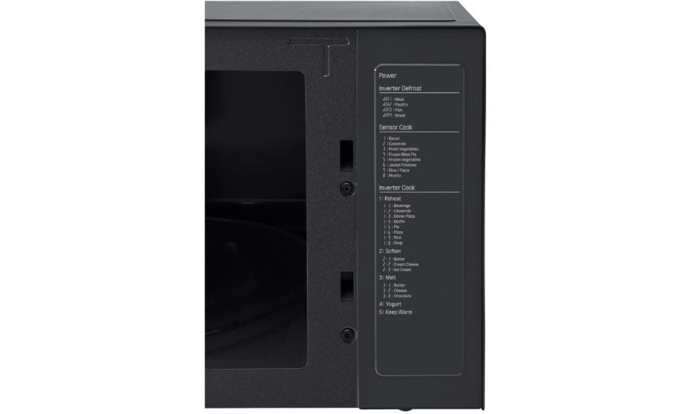 This LG 42L Inverter Microwave’s sleek minimalist design features a black glass finish and a touch control panel to perfectly blend in with your modern kitchen. With 22 different cook menus, 4 defrost options and 10 varying power levels of up to 1200watts, LG’s NeoChefTM technology promises to reheat and defrost 33% faster than your average microwave whilst maintaining evenly cooked foods to the core. Moreover, SGS confirms that LG’s Anti-Bacterial EasyCleanTM makes interior cleaning convenient with only a few wipes yet eliminating 99.99% of surface bacteria.